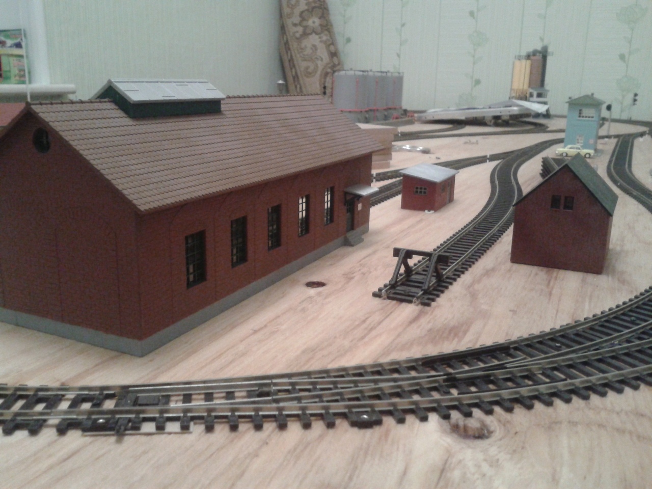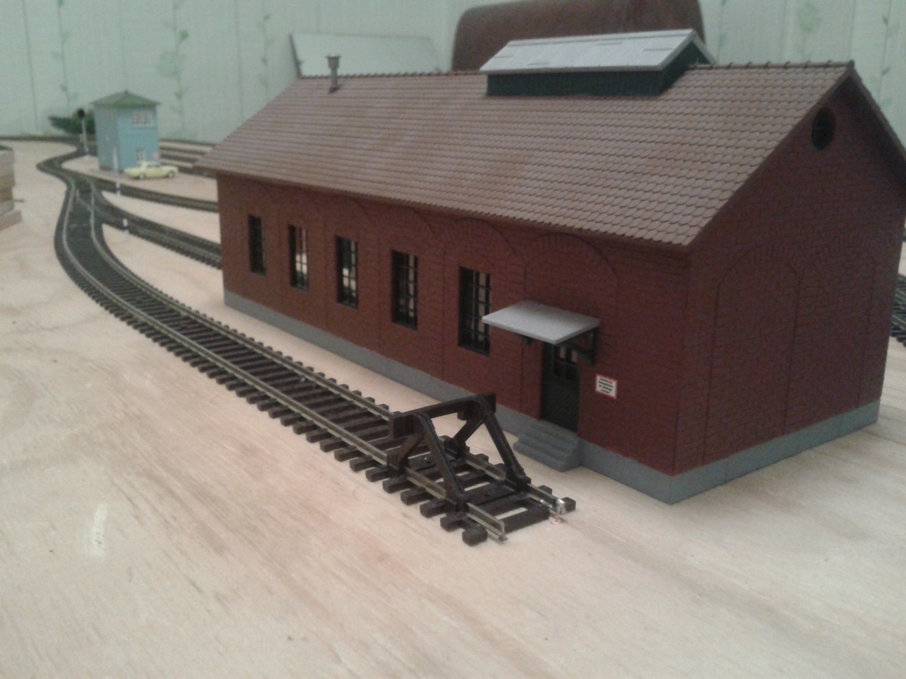 До ландшафта еще далече. Нужно сначала установить строения, а они еще не все подобраны по тематике, затем путевые ящики, имитации стрелочных приводов, флюгарок, потом отсыпка балластом и только тады можно кустами заняться.