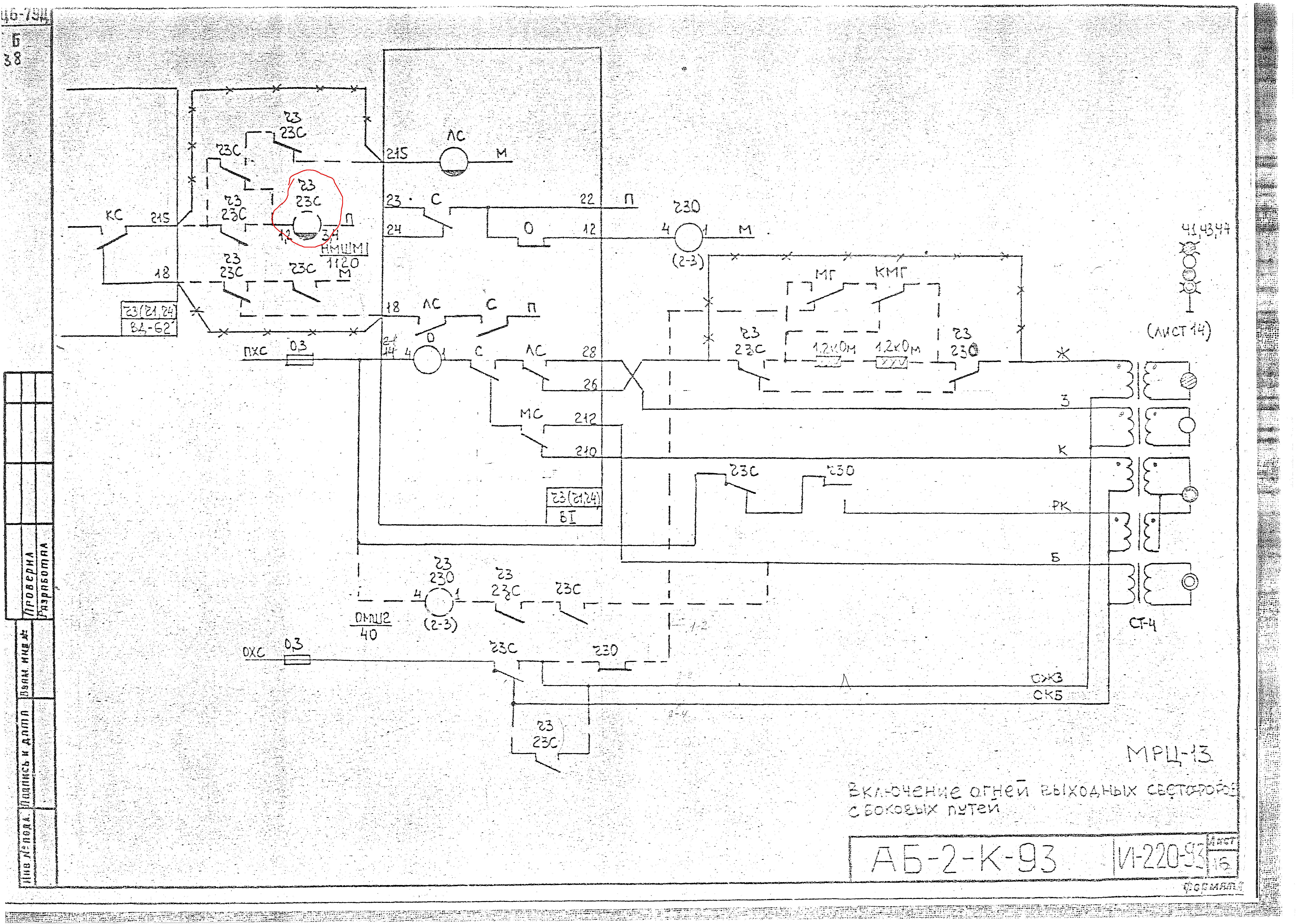 Нужно ли включать в цепь сигнального реле контакт 2ЗС для светофора с бокового пути (не безостановочного) при отправлении на неправильный путь, по показанию желтый мигающий-лунно-белый? В И-220-93 не показано.