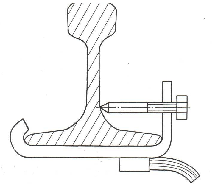 Это может быть что угодно. Главное - это крепление струбцины с приваренным тросом (кабелем) к подошве рельса.