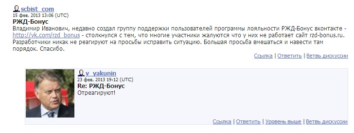 кстати, в феврале РЖД бонус у многих не работал, были проблемы. Пришлось обратиться к Якунину: