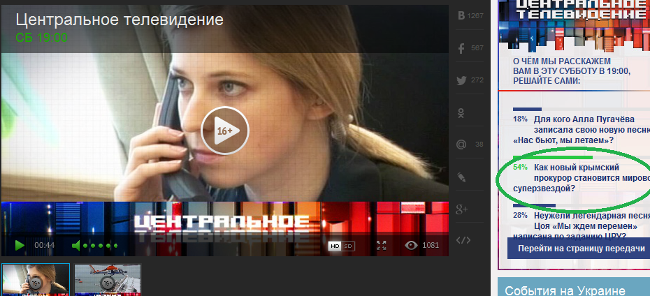Н.Поклонская смотрит клип с ее участием, собравший 2,5 млн просмотров за трое суток: