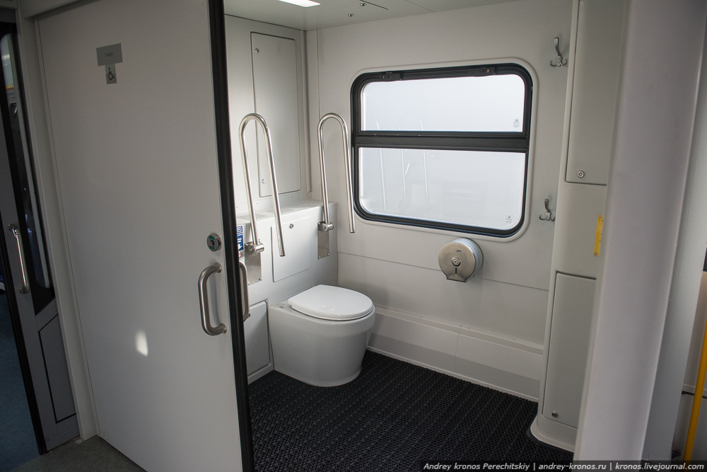 ![]() Первое, что бросается в глаза - обтекаемая форма кабины, сразу вызывающая ассоциации с ЭД4М-500 ![]() ![]() Компоновка вагонов предусмотрена разноклассовая ![]() Просторный санузел адаптированный в т.ч. для лиц с ограниченными возможностями ![]() Кабина http://kronos.livejournal.com/170649.html |