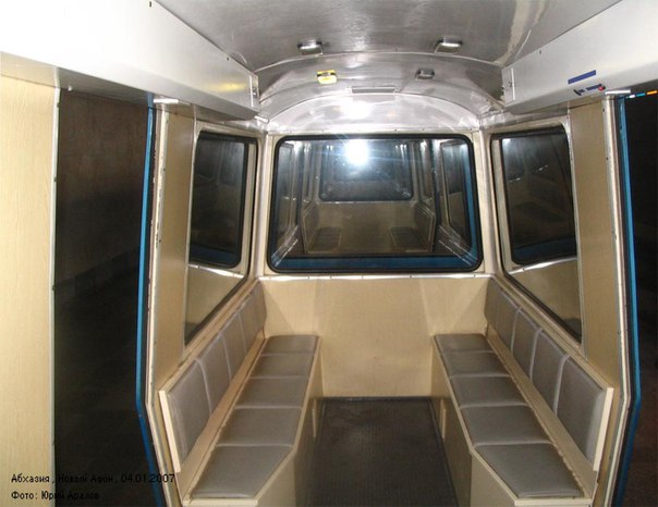 ![]() Электропоезд базовой составности формируется из 6 вагонов: 1 моторного головного (ЭПм), 4 прицепных промежуточных (ЭПп) и 1 прицепного головного (ЭПг). Каждый из вагонов поезда опирается на две колёсные пары, расположенные в одной раме. Колёсные оси моторного вагона снабжены двумя тяговыми электродвигателями, по одному на ось. Кузова вагонов металлические, по бокам имеют двойной уклон с углом в средней части по высоте по аналогии с кузовами вагонов метро типа И. Питание моторного вагона электропоезда осуществляется от контактного рельса, асимметрично проложенного в колее между ходовыми рельсами. Напряжение контактного рельса — 300 В постоянного тока. Места, где контактный рельс отсутствует, поезд проезжает на аккумуляторах. Максимальная скорость электропоезда — 30 км/ч. Моторный вагон представляет собой электровоз с одноместной кабиной управления и машинным отделением, в котором расположены аккумуляторы. Двери в кабину одностворчатые, расположены с обеих сторон вагона. Прицепные вагоны имеют двухстворчатые ручные двери, расположенные по обеим сторонам в середине вагона. Общая вместимость электропоезда составляет 90 сидячих мест. Промежуточные прицепные вагоны имеют салон на 20 сидячих мест, головной — салон на 10 сидячих мест и кабину управления, отделённую от салона перегородкой с дверью. При прохождении модернизации на СВАРЗе на состав установлена тиристорно-импульсная система управления на IGBT-транзисторах, в результате чего ход поезда при включенной тяге сопровождает характерный писк. Пассажирские салоны имеют мягкие пятиместные сиденья, расположенные спинками к боковым окнам. В головном вагоне пассажирский салон укорочен, из него имеется возможность обозревать путь через стекло кабины машиниста. Двери состоят из створок и открываются вручную. Изначально в пассажирских салонах поездов были установлены двери, открывающиеся вовнутрь и отделённые от сидений небольшими перегородками, сплошные мягкие диваны и большие светильники, аналогичные устанавливаемым в салонах электропоездов Рижского завода широкой колеи. После модернизации на СВАРЗе в пассажирских салонах были установлены раздвижные двери и убраны внутрисалонные перегородки, заменена обшивка стен, сплошная обшивка сидений заменена на раздельную, светильники заменены на меньшие по размерам. В 2004 году первый из электропоездов был отправлен на капитальный ремонт и модернизацию в Москву на завод СВАРЗ, в ходе которой были заменены кабины машиниста, двери вагонов, электрооборудование и отделка салонов, а электропоезд окрашен в сине-голубые цвета, после чего вернулся в эксплуатацию в 2005 году После этого второй электропоезд был отставлен от работы, впоследствии в 2008 году он также подвергся аналогичной модернизации в Москве, после которой вновь стал эксплуатироваться на линии с 2009 года. Находились в регулярной эксплуатации с 1975 до 2014 года, в настоящее время не работают. После поступления в эксплуатацию нового электропоезда Эп-563 электропоезда ЭП были отставлены от работы. По состоянию на 2014 год второй состав за исключением головного прицепного вагона находится на втором пути конечной станции Зал Апсны, другой головной вагон и первый электропоезд — в депо и на путях перед начальной станцией Входные Ворота. |