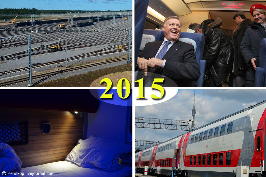 1. Событие года №1 - внезапное падение многолетнего главы РЖД, В.И. Якунина. Причём оно было любопытно технологически - так как ушёл он в никуда, несмотря на "сенаторские" намёки и затем вообще (медийно) канул в Лету. Как будто бы его выключили, как рубильник. Последствия для системы железных дорог - существенное падение политического влияния главного ж/д начальника и понятные попытки смежных экономических ведомств в вакууме власти отжать у этой системы куски полномочий, а также обескровливание ж/д финансов. Что у "реформаторов" из правительства выйдет и получится ли у них пережать кислород системе магистрального транспорта России - увидим в новом 2016-м. 2. Продолжалось обвальное схлопывание межгоссообщения. Рвались остатки ранее интенсивных ж/д связей с Украиной, сокращались поезда на этих направлениях. Отвалилась Литва - двумя порциями. Сперва с Питером, потом с Москвой. Почти отвалилась и Эстония, но после месячного перерыва таки реанимировалась, хотя и в новом качестве - таллинским объединённым поездом РЖД на Питер - Москву. Также схлопывалось и грузовое сообщение с Украиной, включая оперативный обмен вагонов. Окончательно умерло "балканское" направление. Разве что Молдавия уцелела, но это ещё не Балканы. Было начато строительство обхода магистральной линии Москва - Ростов в районе Чертково. 3. В начале года разразился кризис пригородного сообщения, который мог потенциально перерасти в социально-политический. Но верховная власть фишку такого ненужного риска просекла и оставила его в режиме "как есть" - т.е. без развития вширь, но и без обвальной отмены действующих маршрутов. По факту, в будущем всё равно придётся решать эту проблему - а пока что она осталась в подвешенном состоянии со старым и неуклюжим механизмом. Некоторые регионы лишились таки пригорода - как, например, Псков. 4. Началось шествие "Ласточек" по стране. Их критикуют за дороговизну эксплуатации, но тем не менее они довольно быстро распространяются по регионам. Петербург, Москва, Карелия, Северный Кавказ и Кубань, Средняя Россия, Средний Урал. Их начали также производить в пригороде Екатеринбурга (Верх. Пышма), и пока степень локализации состава - ок. 70%. Кроме того, у "Ласточек" появились теперь разные модификации внутренней планировки - дальние и ближние. 5. Продолжалось и шествие двухэтажников по Европейской части, которое началось в предыдущем году поездом на Адлер. В феврале ежедневный купейный состав (№ 5/6) пущен на Питер, затем на Казань, в декабре и на Самару. Более того, публике была представлена очень удачная (на мой взгляд) модификация сидячего двухэтажника межгородского класса в формате экспресса на Воронеж. 6. Пущен "Стриж" (Talgo) на Нижний Новгород, который до майдана предполагался на Киев. Сумели таки его пристроить, перебросив высвободившиеся "Сапсаны" на питерское остродефицитное направление - где стало много двойных огромных 20-вагонных составов. Вторая партия "Стрижей" с тележками переменной ширины готовится в 2016-м на Берлин, с существенным ускорением расписания. 7. Крым окончательно стал ж/д островом, замкнувшись внутри. Сообщения с УЗ нет. До постройки керченского моста осталась лишь слабенькая нить в виде прицепных вагонов через переправу - правда, по единому билету и субсидируемому тарифу. 8. В части проектов ВСМ в рамках русско-китайского партнёрства на 