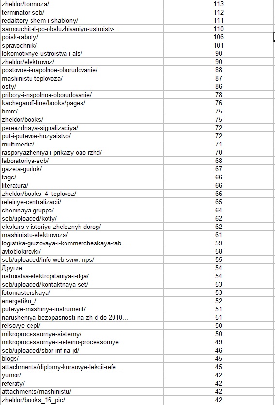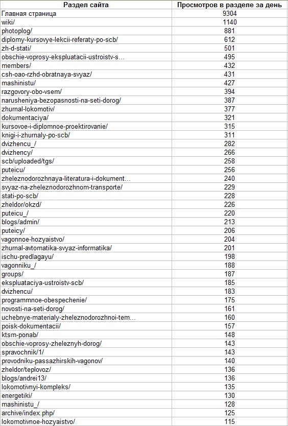Вот дневная статистика кто чего смотрит (только разделы с числом просмотров от 42 и выше):