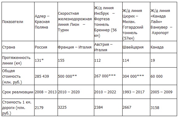 народ, такие затраты оправданы, я уже писал в топе про немцова, но повторюсь.. 6тоннелей, самый протяженный 2917м, остальные меньше, вся дорога на мостах и виадуках, по грунту если километров 5-7 набежит то хорошо, да и то в основном от аэропорта, скальный грунт, высота виадуков от 5 до 20 метров, пож дорогой река, мзымта, что в переводе означает бешеная, очень любит менять русло, из - за этого огромное количество гобеонов, ну и как обычно у нас, у Русских, за 3 года ничего практически не делалось, а за год теперь все надо сделать... строители приехали в конце января, думали начать строить, щас!!! путей нет, с марта месяца 3!!!! раза переделывали проект, 28 мая был запланирован пропуск ласточки, 29 открытие саммита, а 25 изменение в проект... по разъезду 33км убрали стрелку 3\3с, соответственно и рц выкинули, а о проге на пост НИКТО!!!не подумал, зам Ш приехал, поорал, поплевался, распальцовку провел и ухехал, МОЛЧА,