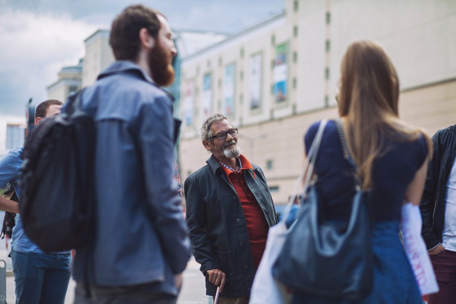 ... мы отправились в Мекку всех бездомных столицы – на Курский вокзал, настоящую экосистему со своей развитой инфраструктурой. Экскурсия началась у входа на станцию метро "Чкаловская". В нескольких десятках метров от входа в подземку небрежно опираясь на трость, в окружении дюжины молодых людей стоял загорелый и харизматичный дед – Виктор Иванович. Ему уже 64 года, из них 23 он провел на улице. Рядом с бездомным гидом стоял создатель общественного движения "Друзья на улице" Андрей Волков, он же является организатором экскурсии. Среди тех, с кем мы изучали жизнь бездомных в Москве были в основном студенты, несколько коренных москвичей, а также пара из Финляндии – в Москву они приехали учиться. ![]() Андрей провел краткий инструктаж и обозначил несколько основных правил. "Некоторые места, в которых мы окажемся – для многих настоящий дом и, будучи в нем гостем, необходимо помнить об этом. Если мы привлечем слишком много внимания, после у некоторых людей могут появиться проблемы с охраной и полицией", – предостерег он. Нас также попросили не фотографировать бездомных без их согласия – многие опасаются своеобразного "камингаута", ведь некоторые жители Курского скрывают от родственников и дальних знакомых реальное положение собственных дел. Мы пошли за нашим экспертом по выживанию, Андрей предложил по дороге обращать внимание на розетки и циферблаты Курского – для большинства жителей вокзала это предметы первой необходимости. С помощью часов бездомные узнают время, когда можно лечь в залах ожидания и более менее спокойно поспать. Розетки нужны для того, чтобы заряжать свои гаджеты. Да, бездомные сегодня тоже живут в век высоких технологий. У нашего Виктора Ивановича в кармане лежала синяя Nokia с фонариком, а в одной из сумок скрывался новенький планшет. Пройдя вдоль вокзала мы остановились у фонтана, напротив круглосуточного магазина – места, где всегда можно купить еду и алкоголь. Андрей отметил, что быть бездомным сегодня достаточно дорого. Даже самые дешевые макароны с котлетой будут стоить ему как минимум 130 рублей (цена ближайшей столовой). Причем человека могут попросту не пустить в здание из-за отталкивающего внешнего вида. Один из важнейших аспектов в жизни бездомного – внешний вид. Если человек хотя бы одну ночь провел на голой земле, его одежда будет грязной и он вряд ли сможет попасть в здание вокзала, метро или даже в магазин. Виктор Иванович рассказал, что в случае, если все же приходится спать на земле – лучше позаботиться о будущем и подстелить хотя бы картонку, так одежда сохранится более менее презентабельной. По словам нашего эксперта, раздобыть чистую подходящую одежду в Москве достаточно просто – главное желание. Например, в здании вокзала располагается часовня Матроны Московской, где любому могут бесплатно выдать одежду. Одна проблема – грязного и неопрятного человека охрана просто не пустит в здание вокзала. "Не всегда очевидно, что человек бездомный – он может быть совершенно опрятно одет, но при этом находиться в сложной жизненной ситуации", – сказал Волков. К слову, наш проводник выглядел более чем колоритно: брюки, красноватая ретро-рубашка с широким воротом, пиджак, целые очки и аккуратно выстриженная борода. Бездомного в нем признать действительно непросто. Виктор Иванович поделился, что бездомному всег