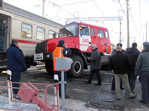 Пожарная машина столкнулась с электричкой в Подмосковье