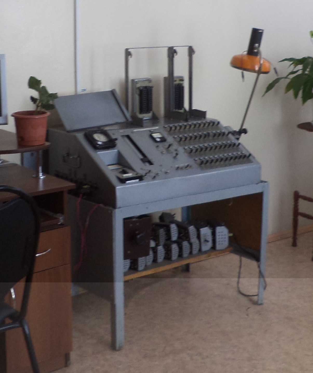 Да это стенд для проверки релейных блоков. Кстати на вашей фотографии этот стенд находится с правой стороны от компьютерного стола.