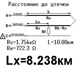 Тоесть рефлектометр показывает информацию. Довольно отчётливо. Мост тоже но не так как то. Чему верить разница примерно в 100 метров. Не пойму почему место до утечки показывает больше длинны кабеля, ну и ладно. Мод. Формула в железке с ошибкой. Кто может по данным приведенным выше сделать расчёт до места утечки, ну по тому методу которым пользуетесь сами, проверенным. VITR добавил 19.10.2014 в 01:03 Винструкции пишется что вывод С подключить кжиле с низкой изоляцией по отношениюк жиле В или земля. Провода соеденишь не правильно он ни чего не выдаст на экран. Тоесть выдаст но эты показания будут гигаомные. И метраж в 10 км. Последний раз редактировалось VITR; 19.10.2014 в 01:03. Причина: Добавлено сообщение |