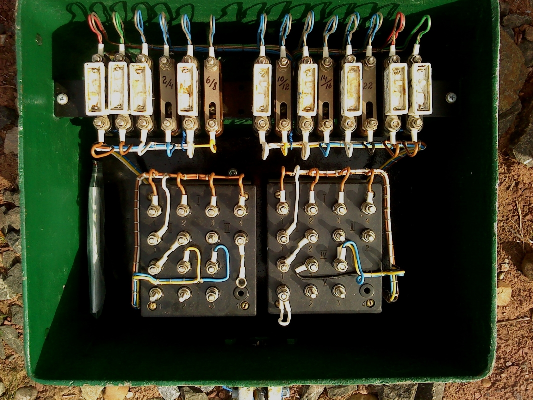 делаю так: 1. на посту после 15А на каждый луч предохранители в зависимости от тока в луче. (насколько помню ток через предохранитель не должен превышать 0,8 от номинала. при это должно обеспечиваться перегорание предохранителя при КЗ на дальнем конце кабеля.) 2 в ПЯ в первичной обмотке 10А, во вторичной на каждый привод в один провод 2А (в ТО-144 нарисовано 1А на стрелку, хотя ток на 1 привод может быть 26/28=0,93А), второй провод обычно объединяется с другими стрелками и там по сумме. Цитата: