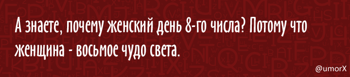 Я от души желаю Вам Любви, здоровья, красоты, Друзей душевной теплоты, Чтобы мужчины окружали Своей заботой и вниманьем, Всегда быть в форме без диет. И женских маленьких побед! З.Ы. Я не генерал - тостов говорить не умею. Стишок нашел в инете. От себя скажу как умею: Желаю счастья, любви, здоровья и всего самого наилучшего. З.Ы.Ы. Мужики - БЕРЕГИТЕ ЖЕНЩИН!!!!!!!!!!!!!!!!!!!!!!!!!!! |