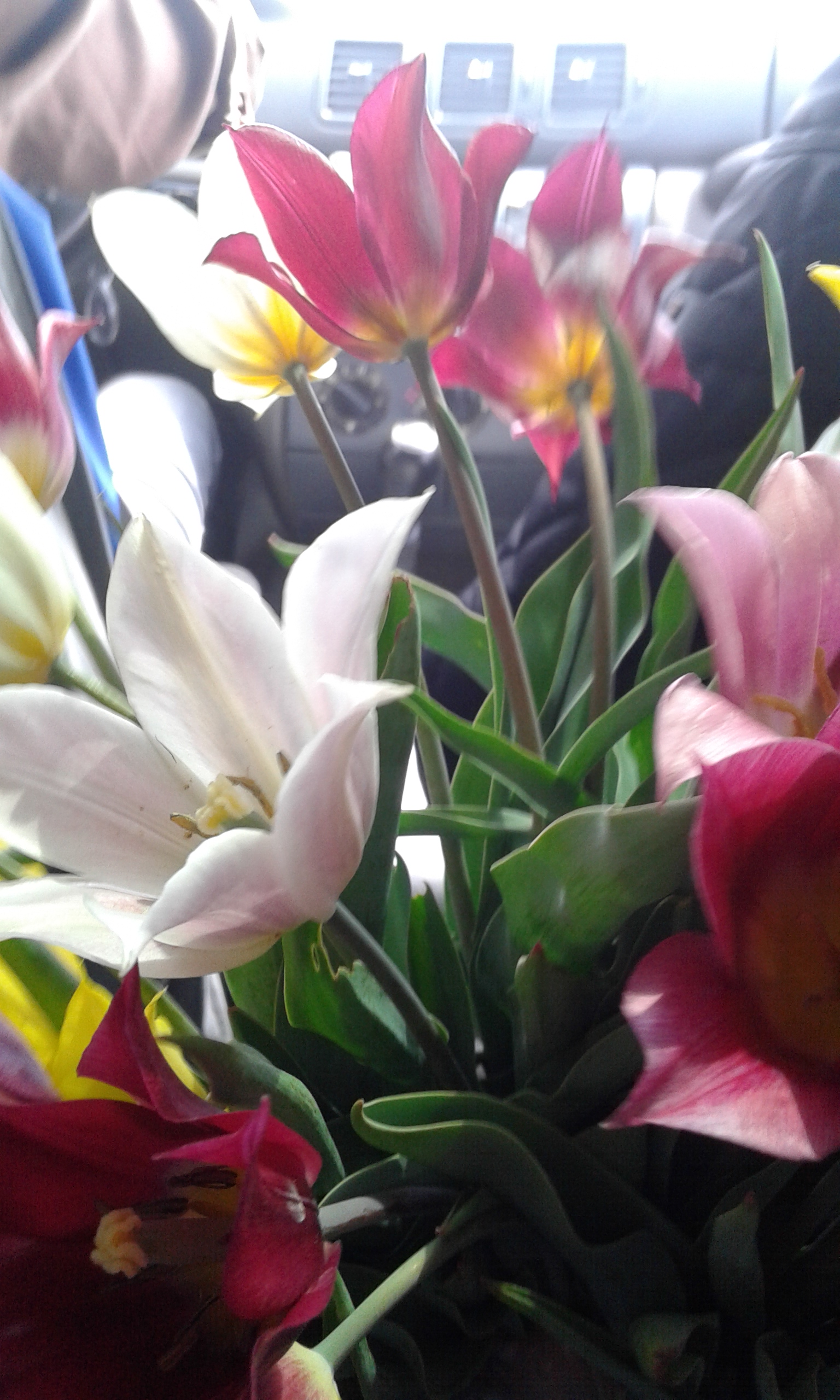 У нас пока деревья незацвели, но признак мая есть. Только приехал с линий. Тюлпаны есть.