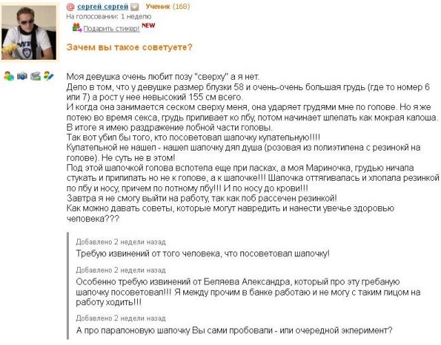 ![]() а вот пара скринов с сайтов соцсетей))))) ![]() коммент явно блондинкой дан))) ![]() ну а это полный улет.... каркуша добавил 05.08.2012 в 00:16 ![]() ![]() каркуша добавил 06.08.2012 в 22:46 седня по нужде великой надо было отправить электронку одному ШНС по фамилии Белов... в контакте его нет, пришлось искать в общей книге... после посылки зачем то начал прокручивать фамилии, и тут, о чудо!!! натыкаюсь на адрес Балуева Николая Николаевича, начальника департамента и т.д, и т.п.... открываю и вижу, адресок на латинице выглядит........valuev.... круууть)))))) флешки с собой не было, но кому нужно может посмотреть сам, а кто не может могу завтра скрин показать....