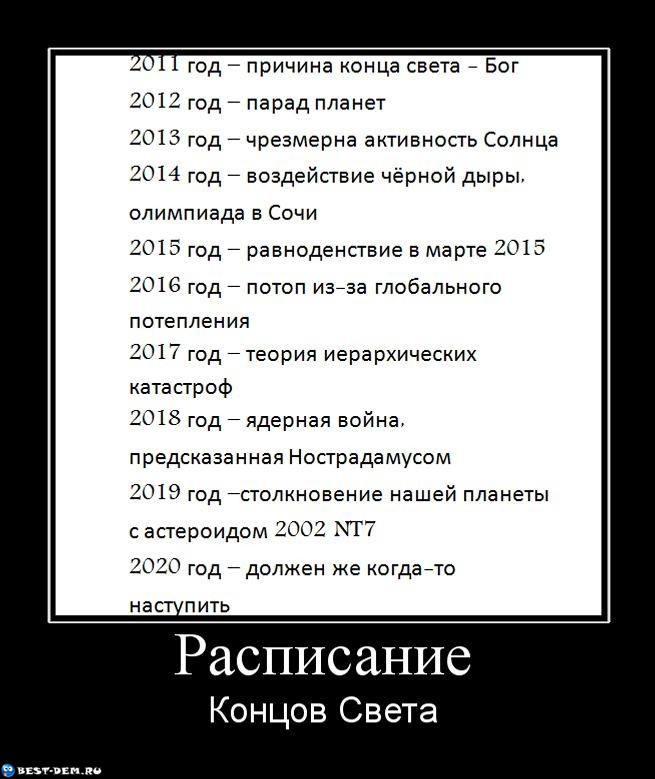Конец света ежегодно наступает 1-2.01,но для особо выносливых утром 3.01.