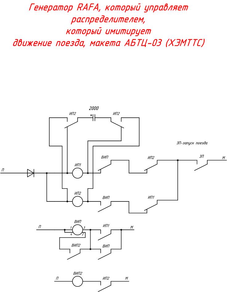 Следует уточнить: 1. Не ошибочно ли в названии схемы применено первое слово. Если ошибочно, то следующий пункт неважен; 2. Следует указать типы применяемых реле и величину напряжения источника питания П, М. |
