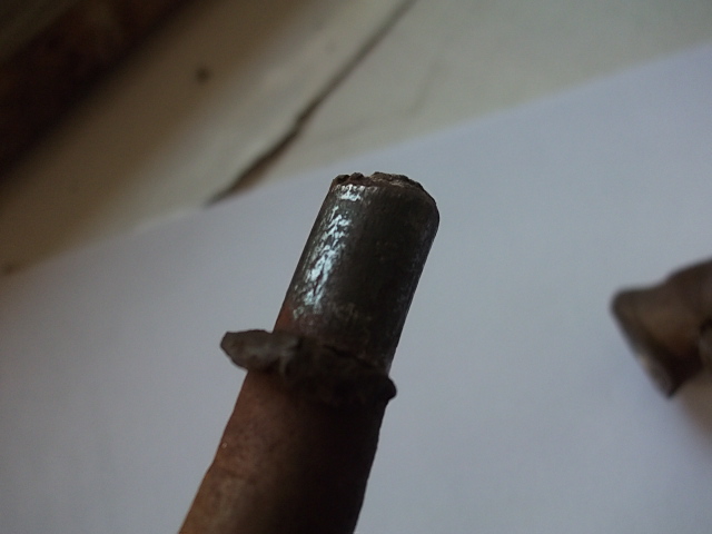 Все-таки меня волнует проблема диаметра дырки в рельсе и диаметра конуса штепселя. Вот размеры штепселя обыкновенного стыкового рельсового соединителя: [IMG] [/IMG]Загорелась РЦ. Приехали и увидели, что отвалился приварной, а стоял штепсельный, при этом на стыке тупое, явное переходное: [IMG] [/IMG]Посмотрели, соединитель целый, но штепсели у него забиты вот так: [IMG] [/IMG]С обратной стороны шейки рельса конус штепселя не выходил, забит был на 15мм, диаметр дырки практически 10мм, т.е. сверлили сверлом диаметром 9,8мм: [IMG] [/IMG]Когда мы выбили старый соединитель, то его штепселя были вот такими (разные ракурсы обоих штепселей): [IMG] [/IMG][IMG] [/IMG][IMG] [/IMG][IMG] [/IMG][IMG] [/IMG]Причина переходного: то, что видно на штепселях, как блестящая металлическая поверхность, оказалось непроводящей пленкой (покрытием) даже после того, как штепсель был выбит из шейки рельса. Мы взяли новый соединитель и установили: [IMG] [/IMG]Но, забились штепселя вот так. Полностью не залезли, перестали бить молотком, как только он начал гнуться: [IMG] [/IMG]Вопрос: ну как в плотно забитом, хоть и не насквозь шейки рельса, штепселе может пропасть контакт? Наверное ответят: надо напильником перед установкой... Вопрос Николаю Николаевичу: почему в дырку диаметром 10мм ШН должен забивать штепсель с диаметром 10,2мм в узкой части конуса. Кто это придумал и благословил? Неужели нельзя делать более длинную конусную часть штепселя и 9,6мм в узкой ее части к примеру? И еще: раньше было 9,8мм, а сейчас появилось 10,2мм. Это почему? Надо делать узел "штепсель-шейка" более универсальным, с поправкой на допуски +/-, так сказать.
