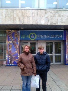 Младший Тюбик с мамой после вручения приза за лучший школьный проект на ступенях строительного университета)))