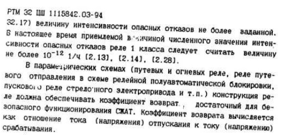 Согласно информации, представленной в Каталоге продукции Камышловского электротехнического завода за 2013, реле типа НМШ и им подобные не удовлетворяют требованиям безопасности, предъявленным к электромагнитным неконтролируемым реле первого класса надежности (согласно НБ ЖТ ЦШ 073-2003), поэтому использование данного типа реле в устройствах СЦБ недопустимо. В тоже время, реле других типов Вот Вам и так называемый "1-й класс"... |