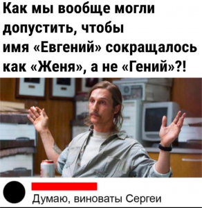когда приходишь в банк говоришь, что тебя звать женек, дружок или как в паспорте? Antibueno добавил 02.12.2022 в 12:03 [IMG]