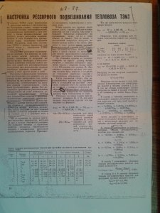 Доброго времени суток!! Вопрос связан с настройкой рессорного подвешивания после ремонта.. Имееться статья журнала "Электрическая и тепловозная тяга" за 1987 год, выпуск № 8.. статья именуется как "Настройка рессорного подвешивания тепловоза ТЭМ 3".. суть в том что этим же способом (описаным в статье) можно настроить подвешивание на любом тепловозе с трехосными бесчелюстными тележками..НО!!!.. Коэффициенты расчета различны для каждого такого тепловоза (2ТЭ116, 2ТЭ10 и т.д.)...так вот вопрос: может кто сталкивался с этим и если у кого какие нароботки??? А если и нет то какие у кого мысли...??? СПАСИБО! (Сама статья на картинке ниже) Требуются коэффициенты расчета b1, b2, b3, b4, b5, b6