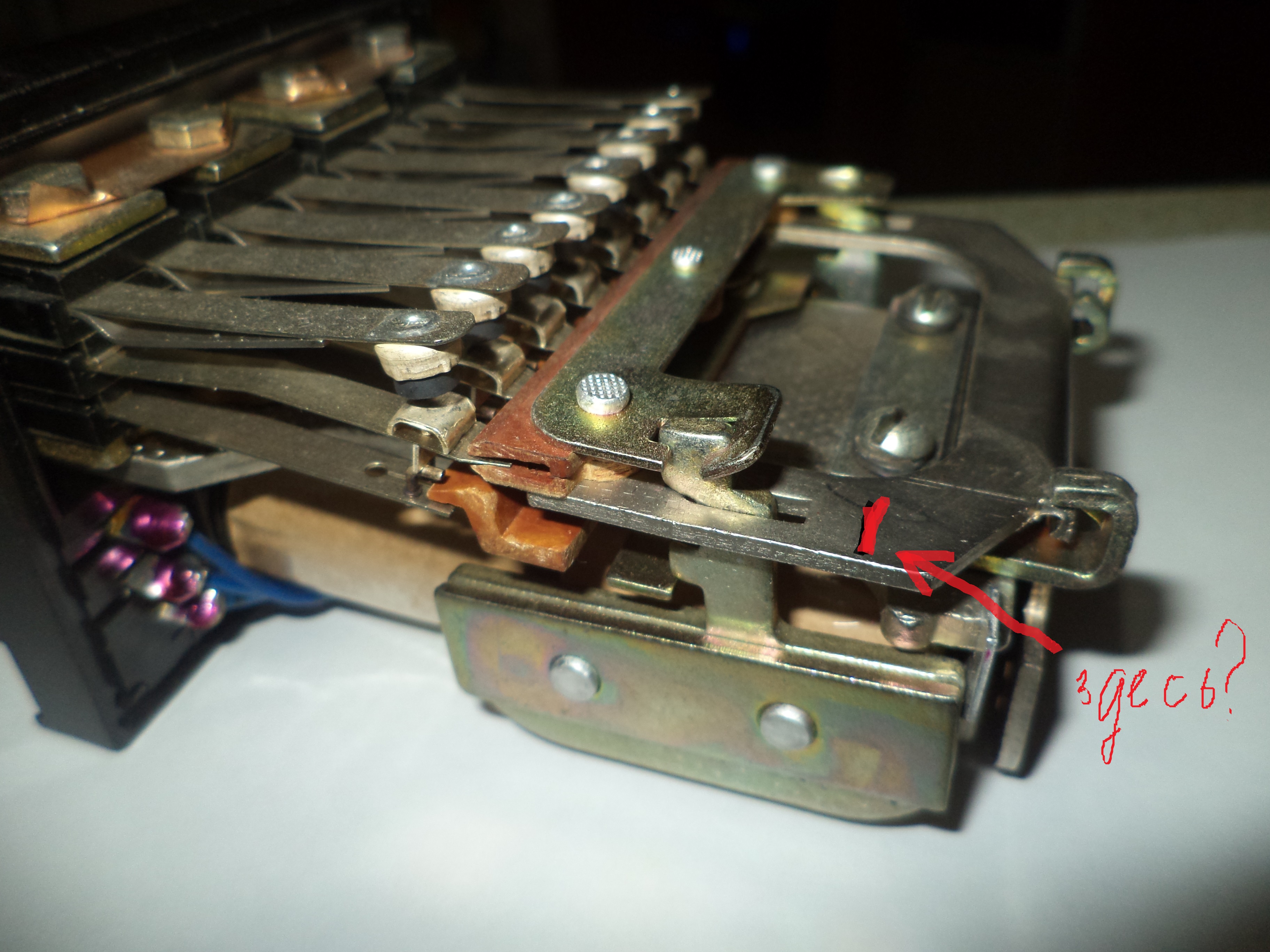 ![]() То есть, если, к примеру, при закладке щупа 1,1 перекидные с тылом не думают размыкаться, надо как бы приподнять ту часть якоря. которая с планкой. Так? А у меня сегодня спросили: "А если на тыловых нажатие маленькое? Увеличишь подгибкой контактов, может исчезнуть зазор между тылом и гусем. Чем-то это можно регулировать?"