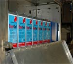High-voltage shields for Areva being dipped into Resodip 647 coating. |