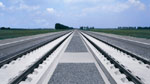 The track system ATD-G is a ballastless track system, whereby a transverse sleeper section is mounted directly onto a prefabricated asphalt layer. |
