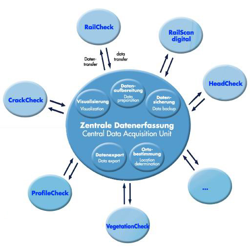 The Central Data Acquisition Unit (Zentrale Datenerfassung, ZDE) stores data generated by all connected railway track inspection systems, which is sorted by related information.