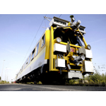 Monitoring the condition of railway infrastructure is an essential precondition for the safe and reliable operation of railway lines. Particularly cost-effective is the regular use of inspection trains equipped with measurement systems. Such systems need to measure accurately and quickly through high-speed inspection trains, thus minimising adverse effects on regular traffic. The devices should be robust, reliable and low-maintenance. In response to these requirements Fraunhofer IPM offers a series of modular railway measurement systems for high-speed inspection trains, which are optimised for varying tasks. Contact-wire ranging system (CRS)The CRS determines the position of up to four contact wires simultaneously without touching them, at speeds of up to 350km/hr. The core of the CRS is the new sector profile scanner (SPS), which is based on distance measurement with a high-frequency modulated laser beam and the phase-measurement technique. The acquisition range of ±35° is continuously scanned by a mirror with a maximum frequency of 800Hz. Height and stagger of the wire are deduced from the scan angle and the distance. With a set of linear transducers, which record the rotary movement (roll) of the bogie, the wire positions can be referenced to the track. Contact wire wear-monitoring systemThe contact wire wear-monitoring system (WWS) deduces the degree of wear from the width of the sliding surface at contact wires with a round bottom. A special unit illuminates the wires from below. Information about the wire position (e.g. from the CRS) is used to focus two cameras, which capture the images of the sliding surface. A maximum of four wires can be processed in real-time and without gaps, at speeds up to about 200km/hr. 3D clearance-profile scanner (CPS) for railwaysThe CPS continuously scans the surrounding of the track with up to 200 profiles per second. Due to the continuous movement of the wagon, a three-dimensional image of the environment is generated. With each rotation the rails are also detected, which allows users to refer the values to the track centre, without any additional sensors. The full functional versatility of the CPS sensor is achieved by several optional software modules, which perform an online analysis of the data and yield results of typical measurement tasks: height and stagger of the contact wire, distance to adjacent track, and ballast profile. With these software modules the CPS becomes a unique multi-purpose sensor. High-speed clearance-profile scanner for railwaysThe high-speed profiler (HSP) is a speed-optimised version of the CPS. Two HSP heads work on the LIMEZ III, the new clearance-profile measuring train of Deutsche Bahn. The novel HSP scanner uses two laser beams, yielding twice the profile rate of conventional scanners. Together with an increased rotational speed one HSP sensor measures more than 550 profiles each second with a total of 2 million data points every second. Sophisticated software performs online filtering, data reduction, consolidation and infringement analysis. Optional software modules can extend the versatility of the HSP, for example to give the distance to the adjacent track. Features of high-speed railway measurement systemsFraunhofer IPM's high-speed railway measurement systems are non-contact, provide excellent resolution even at high vehicle speeds, ensure accurate results and data processing in real time (for data reduction and analysis), have built-in calibration, and possess active systems and robust, hermetic housings. Climatised and semi-automatic cleaning versions are available. Benefits of high-speed railway measurement systemsOur high-speed railway measurement systems provide a wide range of benefits, including: