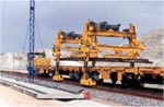 Maquivías owns an important pool of modern plant and equipment and is staffed by highly qualified personnel. Our products are produced using state-of-the-art technology, and when manufacturing, we regard safety and efficiency as the highest priority. MAQUIVÍAS HYDRAULIC GANTRY CRANESThe 'MQ-PH-30' hydraulic gantry has been designed and developed to lift and position reinforced track sections and to distribute sleepers the right distance apart along the track bed when the sleeper distributing beam is attached. Working in tandem, pairs of gantries are able to lift track that is buried in ballast and to transport a weight of up to 30t. The gantry is entirely hydraulic, and its movements are driven by hydraulic motors and cylinders. Movements are governed by a radio control unit, which is backed up by manual controls if the remote controller is lost or broken. There is also a cable connection to which the remote controller can be attached if the batteries have run down. In addition to the main motor-pump unit, there is an auxiliary motor-pump for emergency use (breakdown or fault on the main motor-pump). This allows the gantry to be operated at lower speed than the main pump. Each gantry is driven by all four wheels and has hydraulic braking on two wheels. The gantry runs on an external auxiliary rail, laid parallel to the rail to be lifted or laid. The distance between rails is 3,500mm (this distance may be changed at the customer's request). The gantries are transported on an open sided truck, loaded in such a way as to ensure maximum clearances are not exceeded. MAQUIVÍAS LEVELLING GANTRYThe Maquivías 'MQ-PN-4000' levelling gantry was developed to meet the needs of the new Spanish high-speed rail lines (AVEs), particularly in tunnel sections using the new Rheda 2000 series sleepers for slab track. These sleepers, and their rails, must be perfectly leveled and aligned before concreting them down to the track bed. The unit moves hydraulically and is controlled by a series of solenoid valves operated by remote control. The movements it is able to make are, general track lifting, canting, super elevation, gripping and releasing track and moving the machine backwards and forwards. It also has manual brake spindles on the wheels, illuminated zero position signalling and audible signalling while maneuvering. The gantry has two operating speeds: fast and slow. It also has hoisting capabilities, and can be supplied with a generating set and a transport trolley onto which the gantry is bolted. Maquivías has 35 years of technical and practical experience, which is reflected in our tools and special applications, as we continue to meet the constructor's requirements. These special applications have been used on the Spanish railway network proving themselves to be the most efficient available on the market.