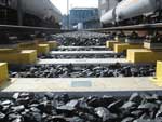 AMTAB's dynamic scale is used in an optimised automatic loading system for an iron ore train. The train passes through the silo without stopping while loading and weighing. |