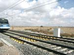 The wheel flat detector measures the wave induced in the rails by the wheels when a train passes. The signals from the sensors are then analysed by the computer. |