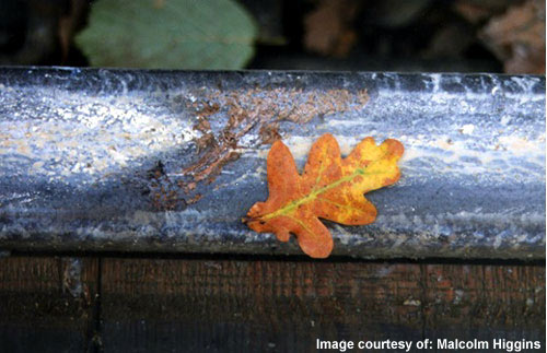 The enemy: a leaf alongside some of the Teflon-like residue from crushed leaves that causes the problems.
