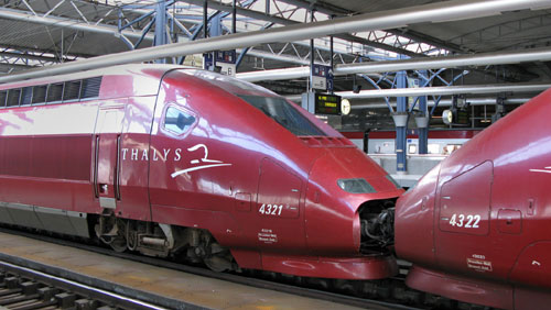 Constituted as an international service, TGV-based Thalys trains for Paris, Köln and Amsterdam converge at Brussels Midi.