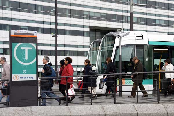 Paris T3 line trams offer far better accessibility than the other modes these passengers may take at the Pont de Garigliano interchange.