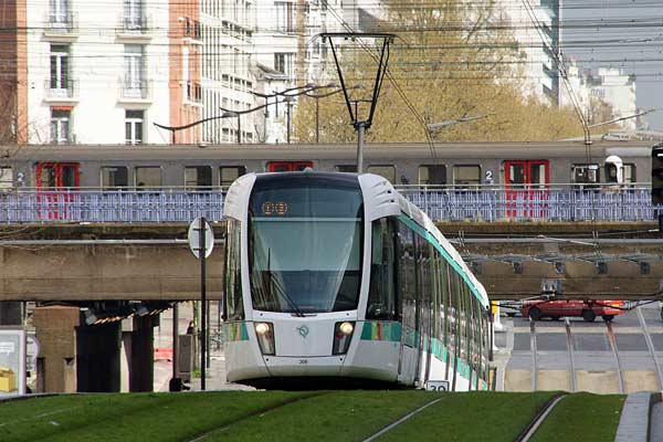 T3's route across radial roads and railways in the south of Paris is very apparent (Brancion).
