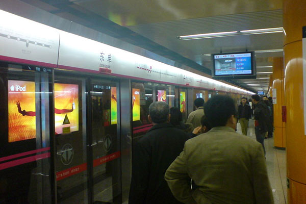 The new metro lines in Beijing opened in July 2008; Line 5 at Dongdan station.