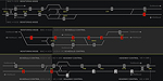 ![]() ![]() Expand Image Trains marked "R" are subject to planned automatic intervention. Those shown in white are acceptably on time, whereas the red trains are running late. | |