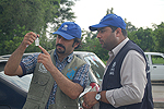 ![]() ![]() Expand Image WHO staff take water samples for testing. Waterborne diseases such as Cholera are prone in this environment. | |