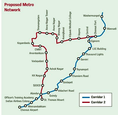 Chennai Metro Phase 1 is based upon has two corridors providing cross-mode interchanges.