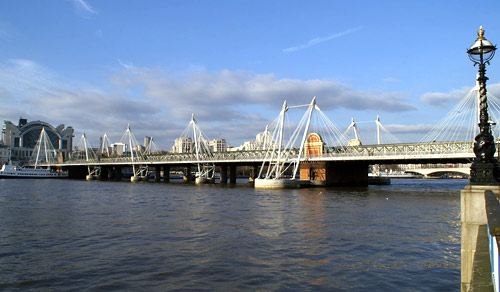 CRT would cross the Thames at the bridge in the background, connecting with the heavy rail line (foreground) at Waterloo (to right).