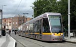 The Luas project had truly international origins with companies from (among others) Ireland, Italy, France, Australia, the UK and Germany. Construction was contracted to AMB (Ansaldo, MVM and Ballast Needam). System designers were Sinclair Knight Merz, Halcrow and Roughan & O'Donovan. Mott MacDonald, EPO and Semaly have acted as advisors and assistants to project sponsors, the Railway Procurement Agency (RPA), an arm of the Irish government. Alstom supplied the trams and Scheidt & Bachmann the automatic fare collection and monitoring system. Selected as the system operator in May 2002, Veolia Transport Ireland (formerly Connex) also acts as manager for the maintenance contracts on the RPA's behalf. InfrastructureThe five-year construction programme for the original two routes began in August 1999. Luas has standard European track gauge (1,435mm), different from the heavy rail network's 1,600mm. Running via IE's mainline Heuston terminus, the Red Line links the new town development of Tallaght on the south-western outskirts of Dublin with Connolly at the east of the city centre, the other main IE Dublin station. It is one of the few stops on the present system having other than solely ground level access, the Luas line terminus being linked by escalator to Connolly IE station. Wholly south of the River Liffey, the Green Line is from St Stephen's Green, adjoining to the city's Grafton Street retail area, to Sandyford. The line uses part of the formation of the abandoned heavy rail route from Dublin Harcourt Street to Bray. Mainly a segregated route featuring some substantial structures and engineered to be capable of full metro conversion, approximately 2km runs on-street in a tramway-type operation south from St Stephen's Green. As built, the Red and Green lines were and remain unconnected, with separate depot and maintenance facilities. In 2008 the Green Line depot at Sandyford underwent increases to secure storage space in advance of fleet enlargement and the terminus layout re-configured to take account of line extension. To avoid disruption created by conflict with vehicle traffic and traffic light control, the original Luas routing over the M50 near the Red Cow stop will be removed, replaced by a dedicated alignment built in 2007/8. Park-and-ride facilities are provided at six sites, with revisions during engineering works and more to be added under expansion plans. Rolling stockLuas is operated by 40 75% low-floor double-ended Alstom Citadis units, initially configured as 26 30m three-car Red Line formations and 14 40m five-car units for the Green Line. A programme has been completed to create an all five-car fleet, the Red Line sets being augmented with new sections from 2007, effectively a 40% capacity increase for the line. Originally in all-over metallic purple, trams subsequently had a lateral yellow line added to aid visibility. Maximum capacity for the 2.4m-wide five-car units is 358. Floor height is 350mm, except over the powered bogies where the height is 600mm. The smaller original versions had four 140kW motors, the five-car version having an extra two 120kW motors fitted to one of the centre sections. Rolling stock has air conditioning in the driver cabs, with video surveillance equipment and public address for enhanced passenger safety. In April 2007 the RPA placed a €51.2m order for 18 more Alstom Citadis trams to cover line extensions and general traffic growth. Deliveries are expected at two per month from December 2008. The deal also carries fixed-price options for further vehicles for later extensions, such as the Citywest Red Line spur that will need five extra trams. Signalling / communicationsLuas control centre is at Red Cow depot (Red Line) which controls movements on both lines and has access to the automatic fare collection system which can be operated manually if necessary. "The aim is for Dublin to have an integrated public transport system comprising 'Quality Bus', Luas, Metro and an expanded DART and suburban rail network."