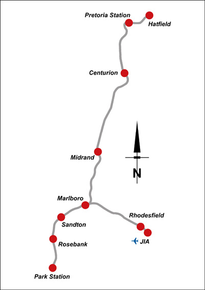 The Gautrain Rapid Rail Link network.