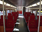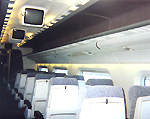 Interior of a second class vehicle, showing the on-board video screens. |