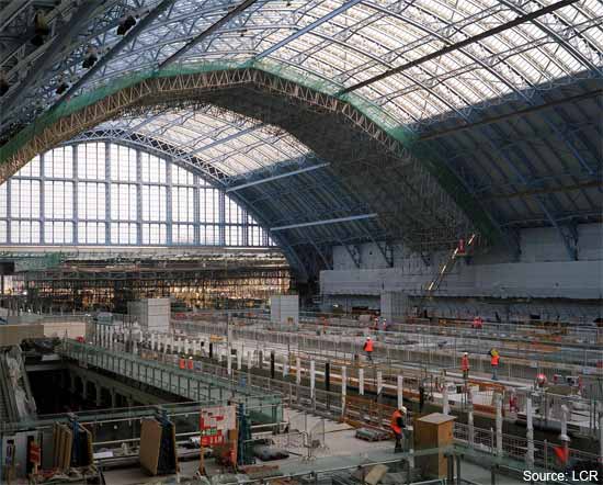 Engineers have completely reconstructed the interior of St Pancras station with new platforms, and renovated the arched 1868 Barlow roof.