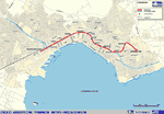 The line reaches inland to Athens city centre from the coastal strip near Mouson. |