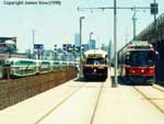 The newer light rail vehicles have low floors to make entry at street level easy. |
