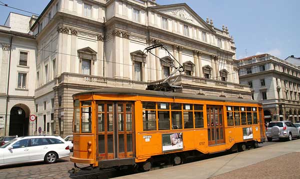 'Peter Witt' tram by La Scala – the Ventotto is the numerically dominant type in the ATM fleet.