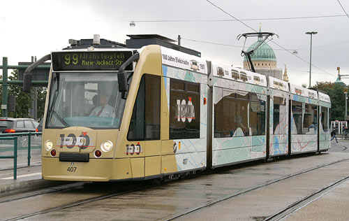 100 years of Potsdam’s electrified tramway (1907-2007) is celebrated in the livery of Combino 407.